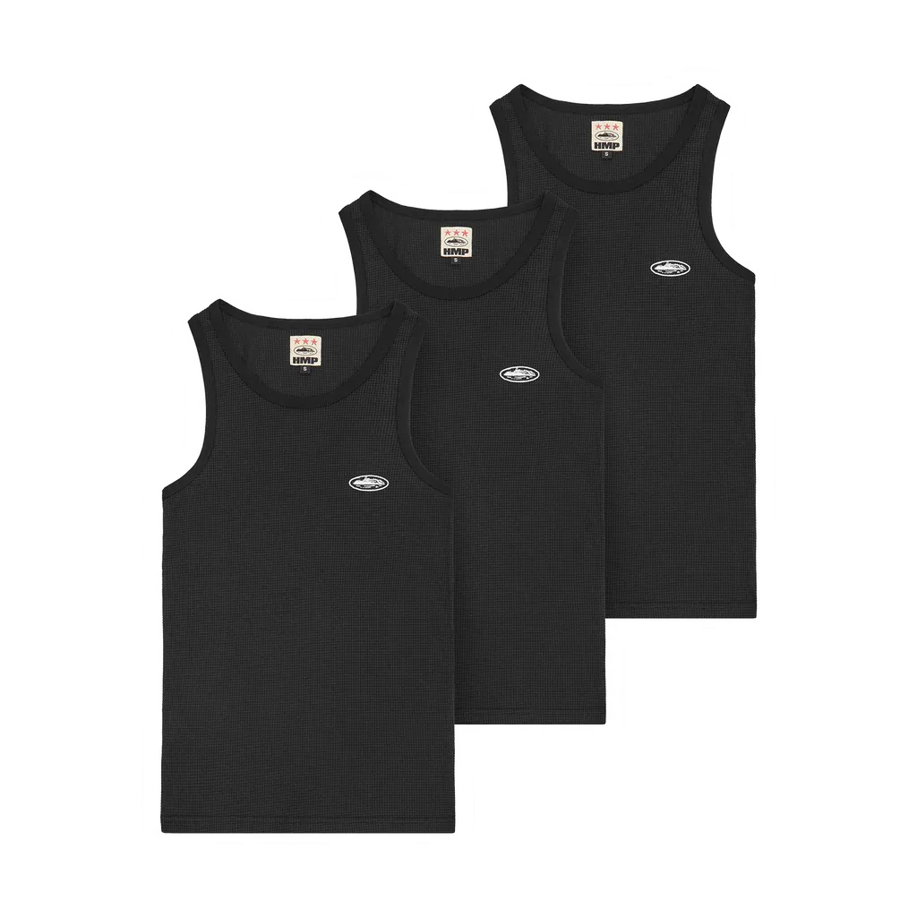 The Corteiz HMP Essentials Black Tank Top 3-Pack is designed for those who love simplicity, practicality, and quality. Three versatile and durable tank tops, perfect for adding a Corteiz touch to your everyday wardrobe.